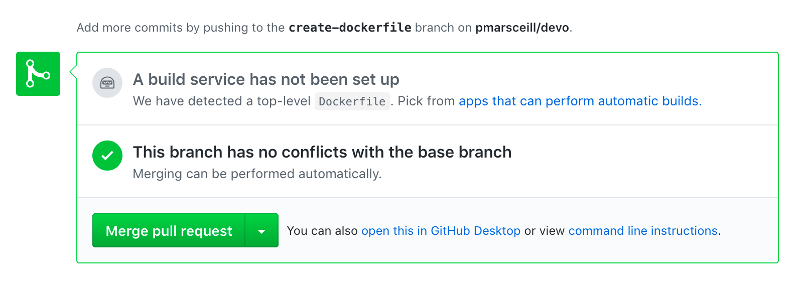 ฟีเจอร์แรกคือการแนะนำเครื่องมือ หาก GitHub พบ Dockerfile ที่ยังไม่มี CI/CD ที่สอดคล้องกัน ก็จะแสดงคำแนะนำให้นักพัฒนาเลือกใช้เครื่องมือ CI จาก GitHub Marketplace ได้เลย (ซึ่ง Cloud Build ก็มีใน Marketplace ด้วย)