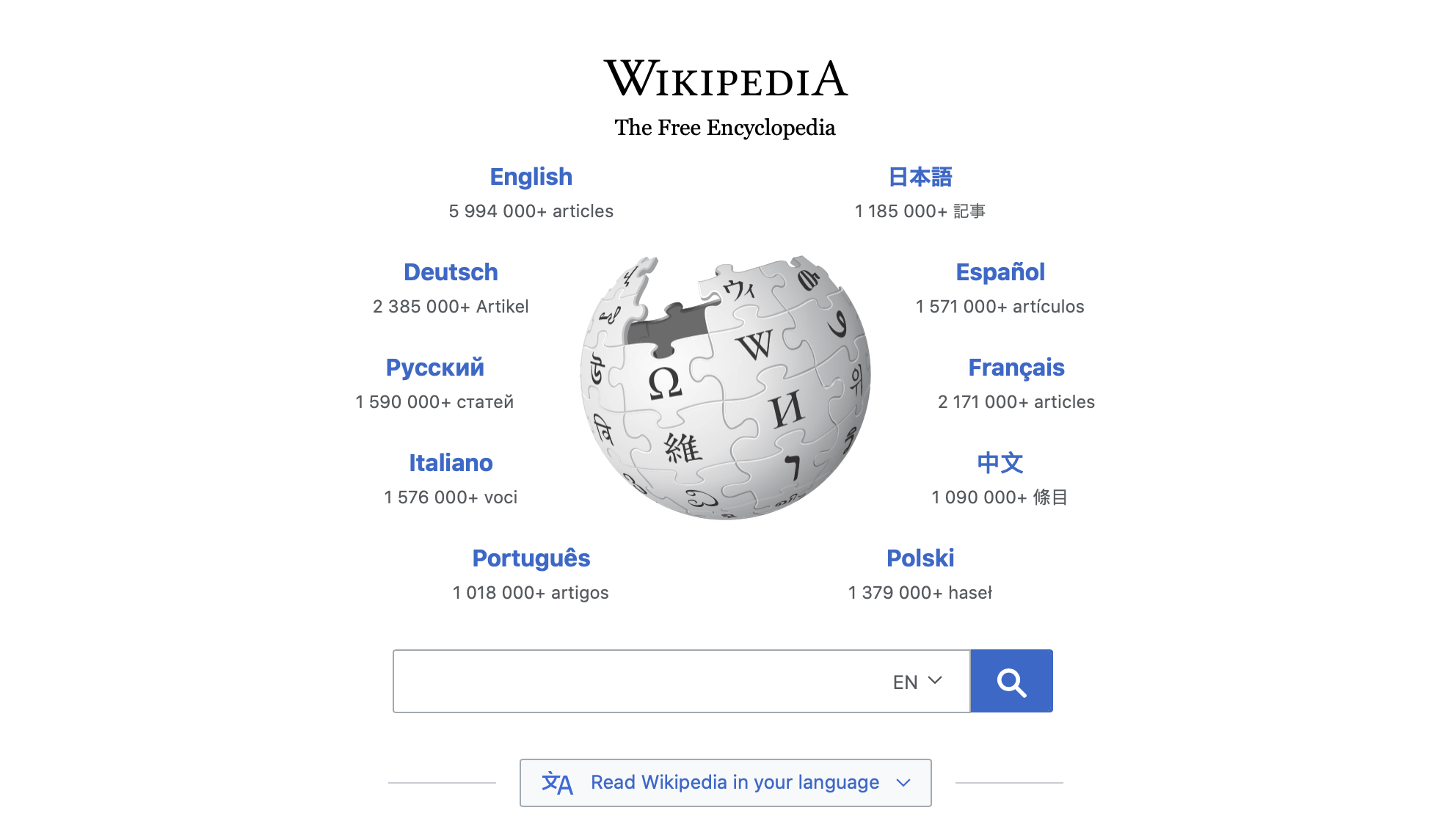ปัจจุบัน Wikipedia มีให้บริการในหลากหลายภาษา แต่ภาษาอังกฤษยังคงเป็นภาษาที่มีจำนวนบทความมากที่สุด ตามมาด้วยเยอรมัน และฝรั่งเศส ซึ่ง Wikipedia เวอร์ชันภาษาอังกฤษมีผู้ใช้งานราว 225 ล้านเพจวิวต่อวัน และข้อมูลจาก SimilarWeb ระบุว่า Wikipedia ถือเป็นหนึ่งในเว็บไซต์ยอดนิยมอันดับที่ 8