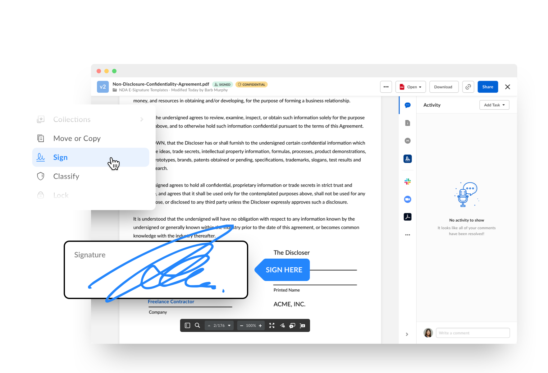 • อินทิเกรตกับ Box for Salesforce ลูกค้าสามารถสร้างและส่ง NDA, สัญญา และเอกสารอื่น ๆ ได้โดยตรงจาก Salesforce