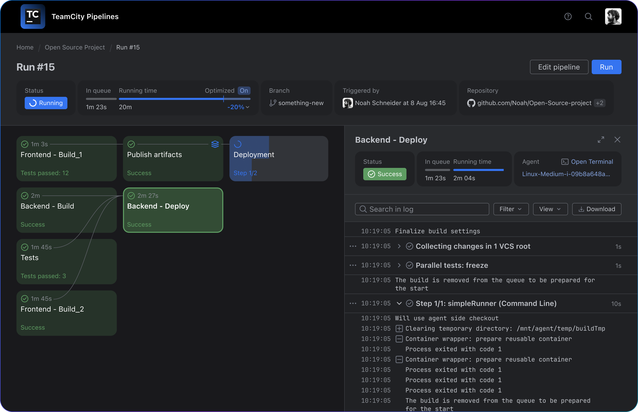 TeamCity Pipelines ปรับวิธีสร้างคอนฟิกของ CI/CD pipeline ใหม่ เลือกได้ทั้งการเขียนเป็น YAML หรือการใช้ PipelineEditor ลากๆ แล้วจิ้มๆ เอา ฟีเจอร์เด่นของมันคือจะอ่านค่าต่างๆ ในโปรเจคของเรา แล้ว "แนะนำ" ฟีเจอร์หรือคอนฟิกที่ควรเปิดใช้งานเพื่อให้ประสิทธิภาพของผลลัพธ์ดีขึ้น