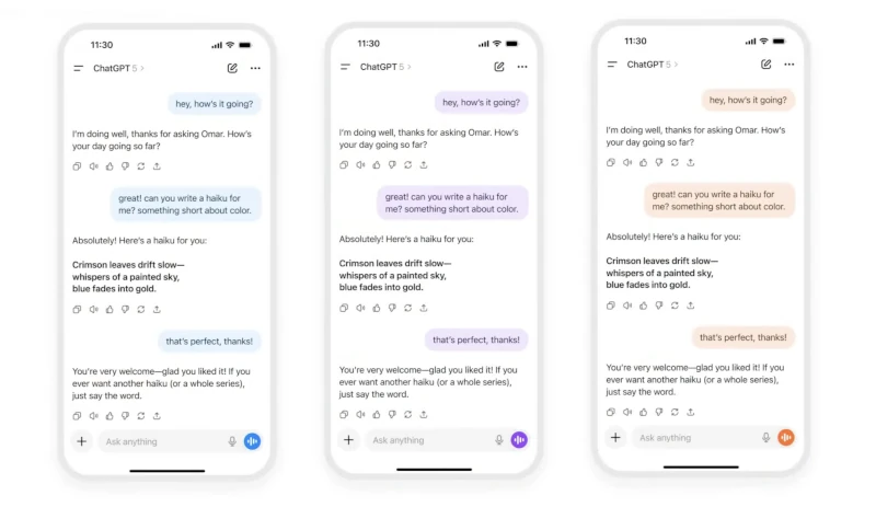 เก็บตกประเด็นเล็กๆ จากงานเปิดตัว GPT-5 โดยบริการแชท ChatGPT เพิ่มฟีเจอร์เปลี่ยนสีพื้นหลังข้อความแชทแล้ว (นี่สินวัตกรรม)​ และรองรับการเชื่อมต่อกับบัญชี Gmail และ Google Calendar เพื่อให้โมเดลเข้ามาอ่านอีเมล-ปฏิทิน แล้วสามารถสรุปข้อมูล-วางแผนตารางนัดหมายให้เราได้