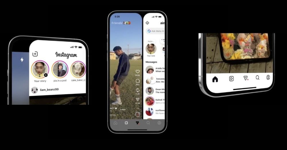 Instagram ประกาศทดสอบเลย์เอาท์แอปแบบใหม่ การเปลี่ยนแปลงสำคัญคือแถบเมนู 5 ปุ่มด้านล่าง โดยปุ่มลำดับที่ 2 เปลี่ยนจาก Search เป็น Reels และปุ่มที่ 3 เปลี่ยนจาก Create เป็น Direct Message (DM) ซึ่ง Instagram บอกว่าเป็นสองฟังก์ชันที่ถูกใช้งานบ่อยมากขึ้นในแอป ส่วนปุ่มที่ 4-5 เป็น Search กับ Profile ย้ายปุ่ม Create ไปมุมบนซ้ายแทน