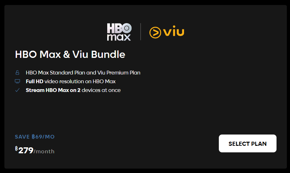 บริการวิดีโอสตรีมมิ่ง 2 ค่ายคือ HBO Max และ Viu ประกาศออกแพ็กเกจบันเดิลร่วมกัน สมัครคู่ได้ราคาถูกลง นั่นคือ HBO Max Standard กับ Viu Premium ในราคา 279 บาทต่อเดือน (ถูกลง 69 บาทเทียบกับสมัครแยก)