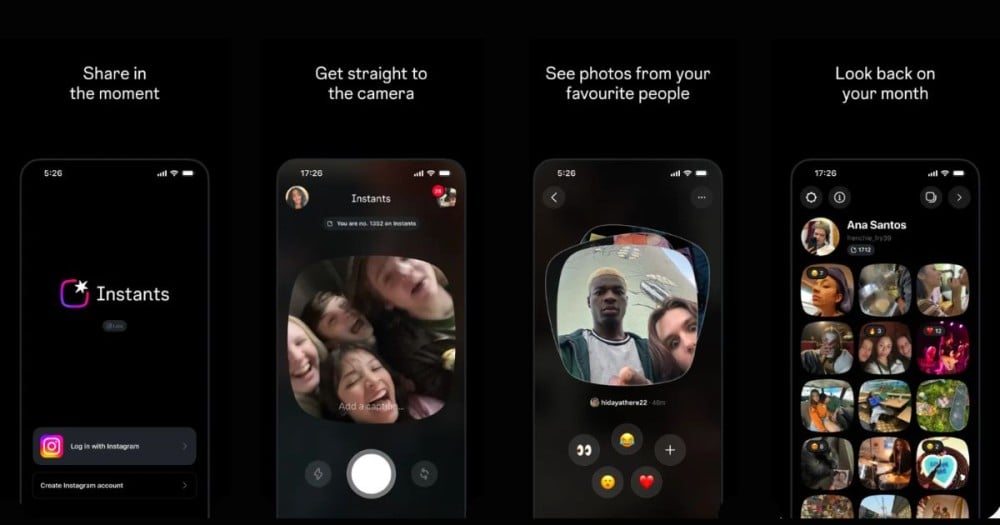 Instagram นิยามแอปแยก Instants ที่เป็นฟีเจอร์ภายใน Instagram อยู่แล้วว่า "real life, real quick." นั่นคือการแชร์รูปให้กับเพื่อนแบบจำกัด ไม่ต้องแต่งภาพให้สวย เน้นความเรียลแล้วแชร์ทันที เมื่อเพื่อนเปิดดูภาพก็ถูกลบไปทันที แนวทางนี้จึงเป็นลูกผสมระหว่างแอป BeReal และ Snapchat