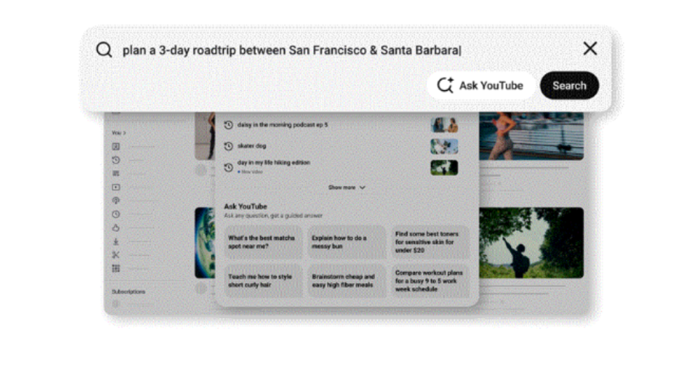 ฟีเจอร์นี้ทำงานโดยรองรับการค้นหาวิดีโอ YouTube ในรูปแบบคำถาม ที่สามารถป้อนรายละเอียดเพิ่มเติมเพื่อการค้นหาเชิงลึกตรงตามต้องการยิ่งขึ้น เช่น ระบุให้วางแผนการขับรถท่องเที่ยวในเมืองที่ระบุเป็นเวลา 3 วัน ผลลัพธ์ที่ได้จะมีทั้งข้อความการวางแผนเดินทางแต่ละวัน โดยมีลิงก์วิดีโอที่เกี่ยวข้องแทรกอยู่ เป็นต้น หากต้องการรายละเอียดเพิ่มเติมก็ป้อนคำถามต่อไปได้