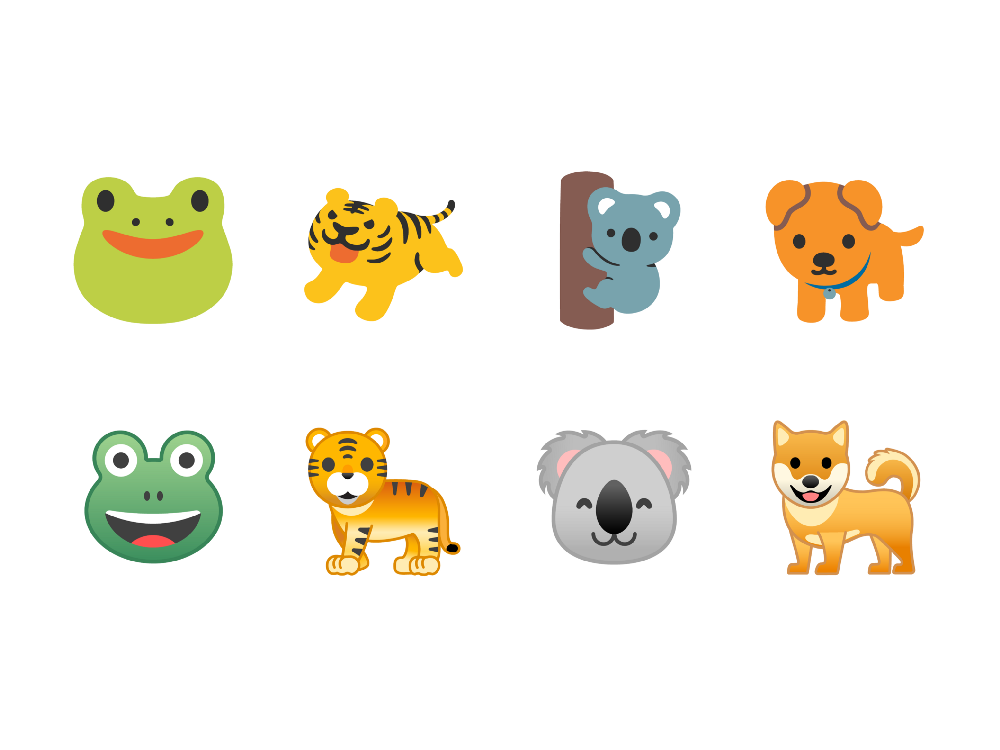 หลักการออกแบบใหม่นี้ ทีมงานได้นำ icon grid ของ Material Design มาเปลี่ยนแปลงเส้นไกด์เล็กน้อย แล้วใช้เป็นต้นแบบในการสร้างอีโมจิแต่ละตัว โดยตัวไหนทีมีมุมมองสามมิติก็จะลดทอนลงให้เหลือสองมิติเพื่อให้ง่ายต่อการเข้าใจ ส่วนอีโมจิแสดงอารมณ์ก็เปลี่ยนจาก blob ที่คุ้นเคยเป็นแบบหน้ากลมเหมือนกับเจ้าอื่นแล้ว ซึ่งจะเน้นการแสดงอารมณ์ให้ชัดเจนมากขึ้น