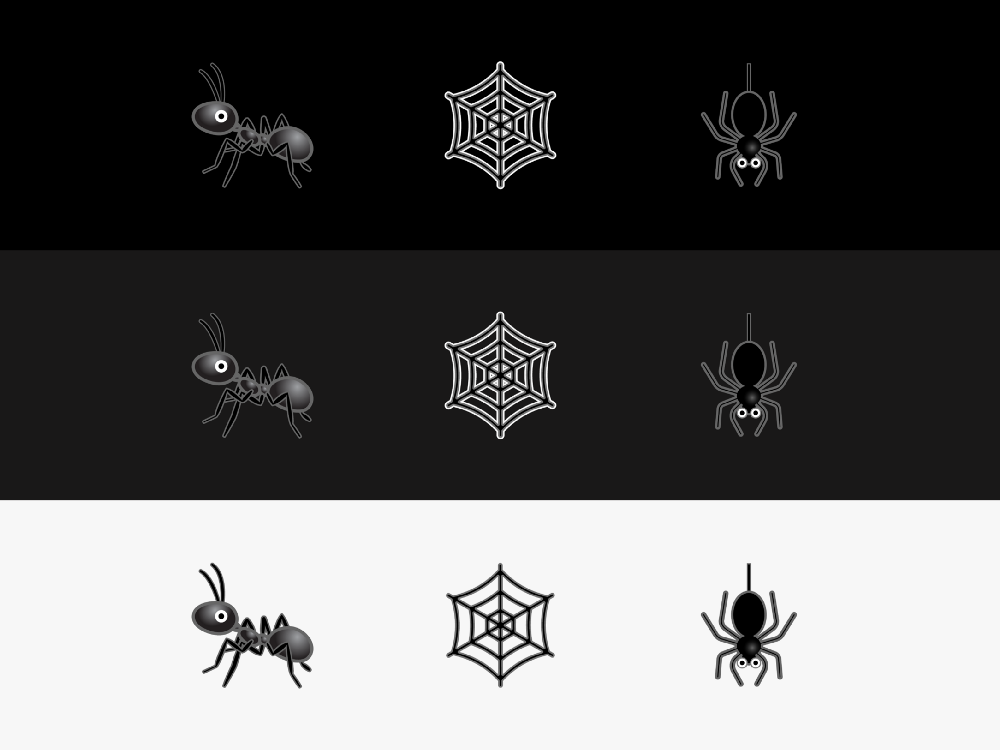 ทีมออกแบบยังเล็งเห็นว่าอีโมจิบางตัวมีหน้าตาที่ซ้ำกันบ่อย ฉะนั้นจึงสร้างชิ้นส่วนกลางที่สามารถนำมาประกอบกับอีโมจิในชุดขึ้นมา โดยมองว่าการทำแบบนี้จะทำให้แต่ละตัวมีความลายเส้นที่สม่ำเสมอกัน และหากอนาคตมีอีโมจิเกิดใหม่ก็สามารถนำส่วนประกอบเหล่านั้นสร้างขึ้นมาใช้ได้อย่างรวดเร็ว